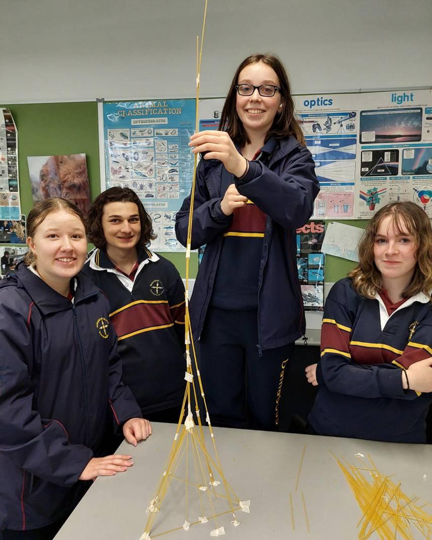 Having completed their Semester One exams, Damascus College Year 10 students were challenged to build the tallest and strongest tower possible out of just masking tape and spaghetti.