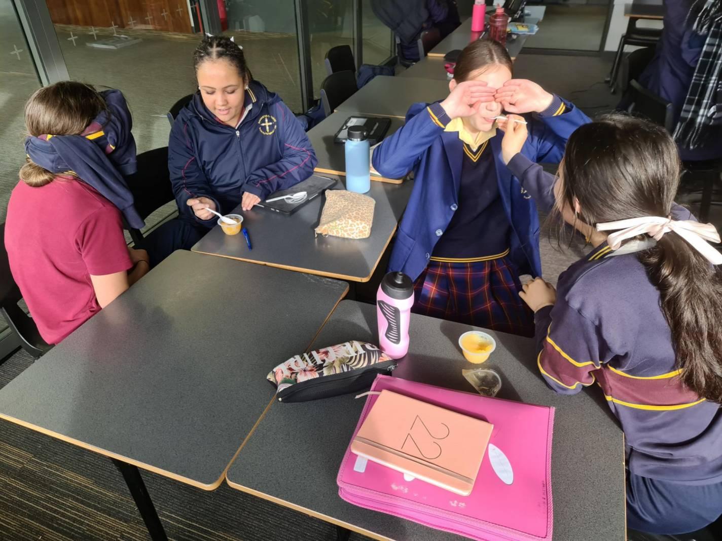 Students showed excellent persistence and resilience as they tried to feed a client, who was not able to assist, a fruit snack.