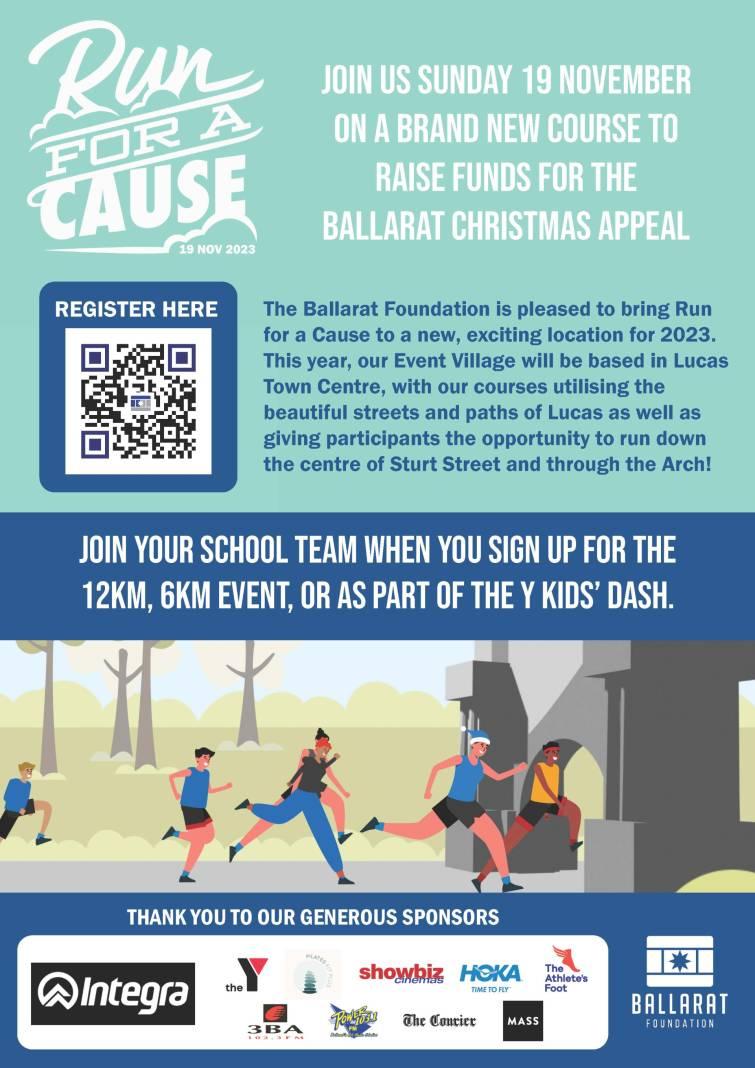 The Ballarat Foundation are once again putting on Run for a Cause which raises funds for the Ballarat Christmas Appeal. We would be very appreciative it if you could help us prom...