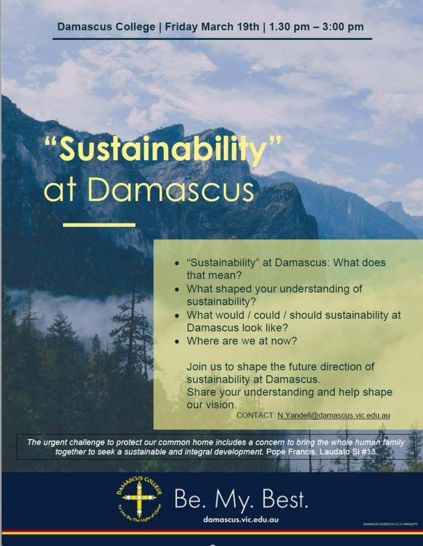 What is our responsibility as a College community? Members of the Damascus College community are invited to a conference to consider this question at Damascus College on Friday March 19th at 1.30 pm – 3:00 pm. Students, staff members and parents are invited. Please indicate your interest in attending by contacting Nick Yandell via email by Tuesday 16th March. N.Yandell@damascus.vic.edu.au