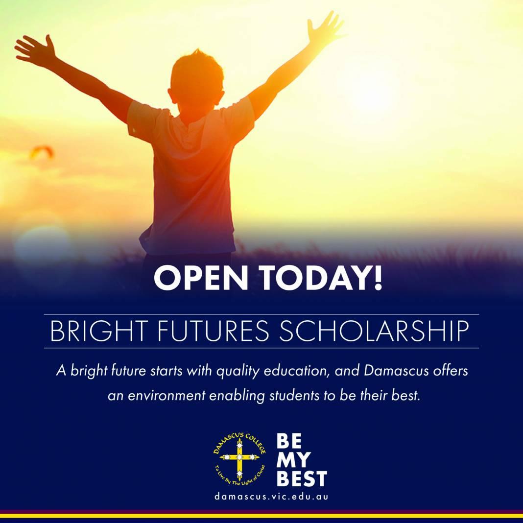The Damascus College Bright Futures Scholarships opens for applications on Monday 5 October, for Year 7 2024. This scholarship is awarded annually to one incoming Year 7 student...