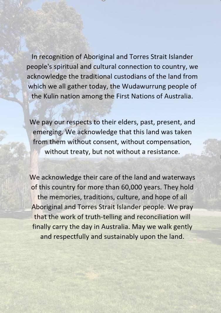 The meeting began with the Acknowledgement of Country and a prayer from the Kimberley.
