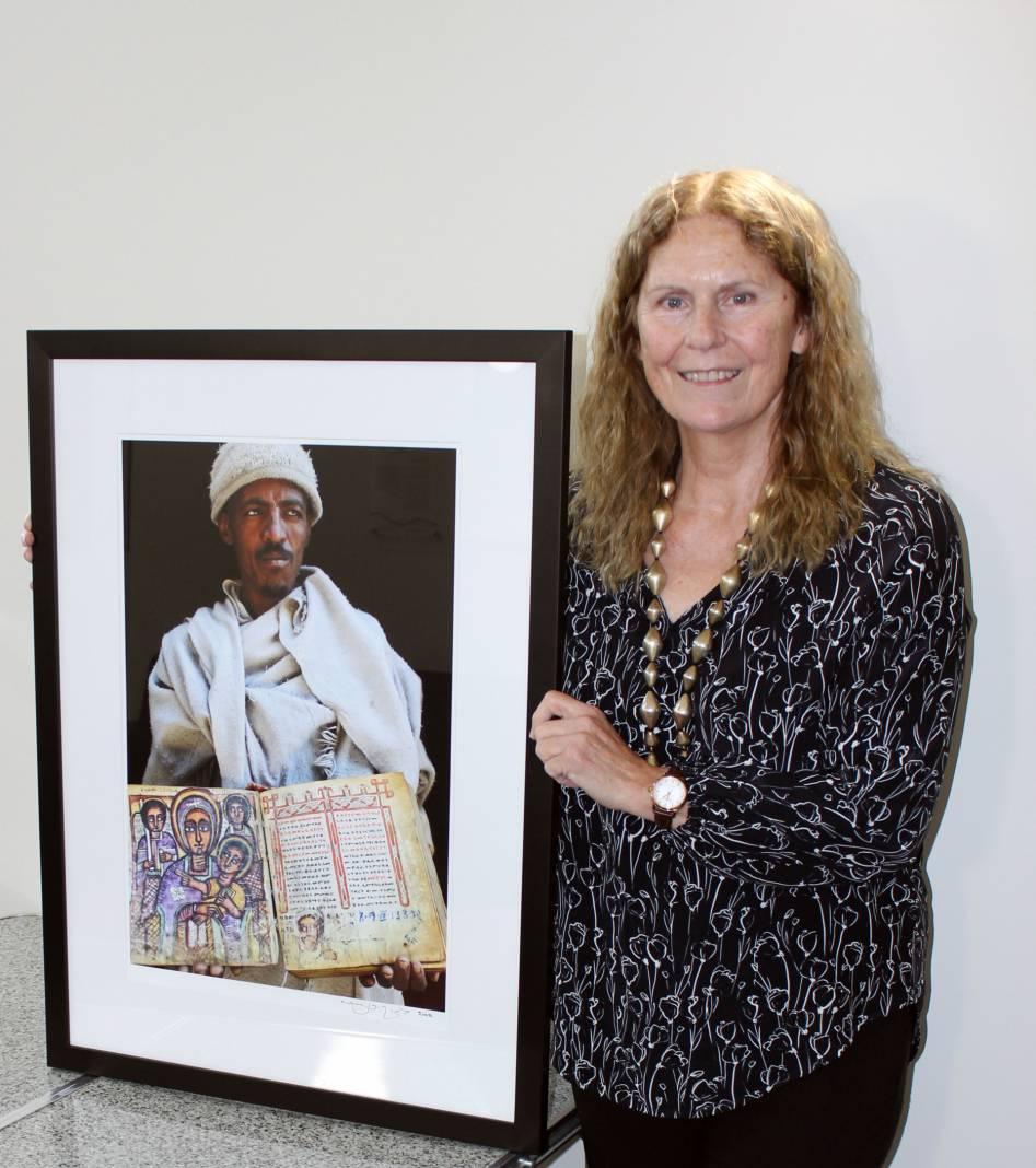 Maria’s piece is a Photograph on Archival Paper that depicts an Ethiopian Priest holding a bible showing the Madonna and Child.