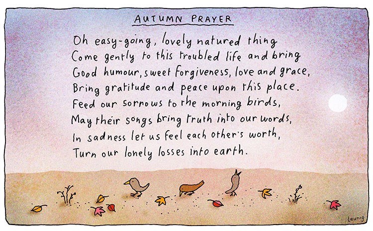 This week, as we move between seasons, Assistant Principal Ashwin Pillai introduced me to this autumn reflection by Michael Leunig. Leunig’s insights into the world are beautiful, and I borrow this one from his website as a beautiful snapshot of this season of change. Autumn Prayer - Leunig