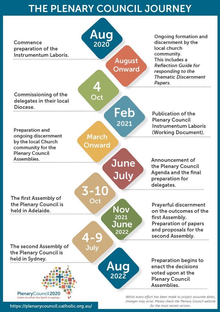 There are just 200 days until the opening of the first assembly of the Plenary Council. A Plenary Council is the highest formal gathering of all local churches in a country. Our Plenary Council 2020 [Now 20021] is being held so that we can dialogue about the future of the Catholic Church in Australia.