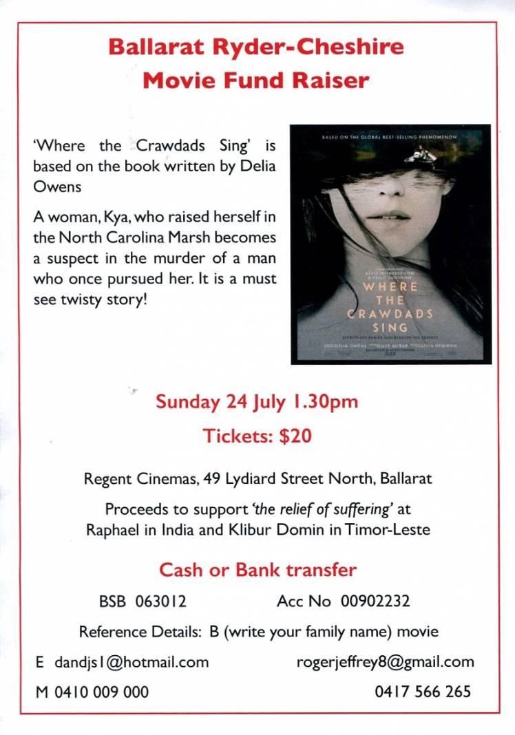 The film Movie fundraiser WHERE THE CRAWDADS SING on 24th July @ 1:40 pm at Regent Cinemas will make a difference.