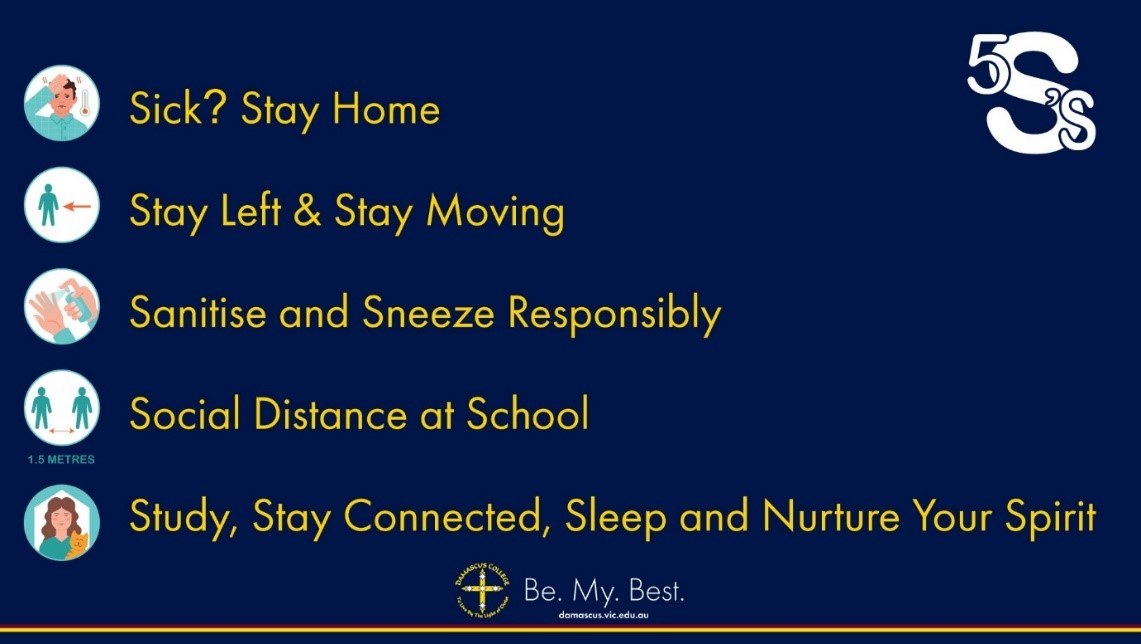 I ask that families please continue to communicate with your young people about the importance of social distancing, personal hygiene and sanitising. The priorities for the Damascus community throughout the pandemic continue to be;