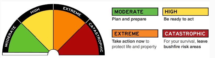 On these Catastrophic days families are encouraged to enact their Bushfire Survival Plan – on such days children should never be left at home or in the care of older children.