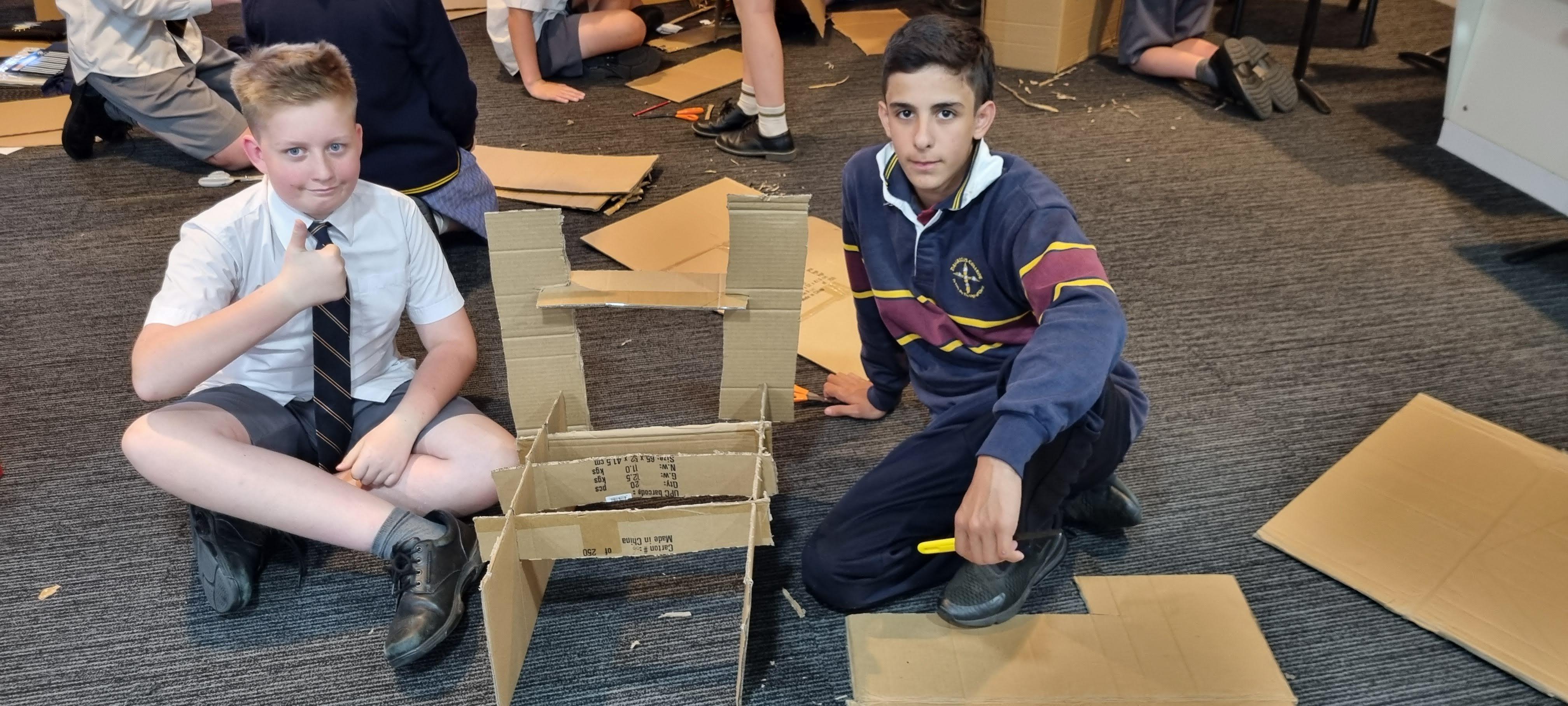 Students were set the task to design and construct a cardboard chair in 1 hour. The chair needed to have a flatpack design, be assembled in 45 seconds and hold the weight of a Year 8 student or our pet bricks Selly and Kirk. Students continued to develop their collaboration and problem-solving skills to produce a creative solution.