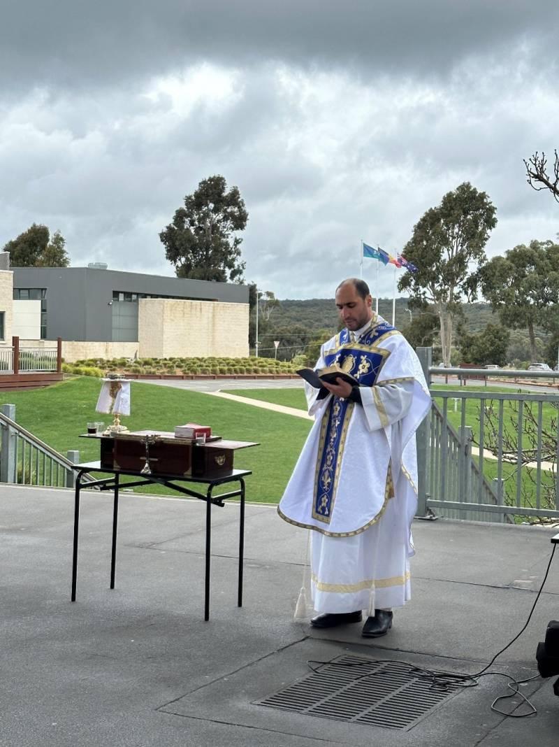We ended the day honoring our Catholic tradition with a Mass led by Fr Matthew Restall. The Mass was celebrated in the open air. Even with the brisqueness of the breeze, and a dark and cloudy sky as the back drop, all staff standing together as one was a true representation of community coming to the table as one, unified in our vision.