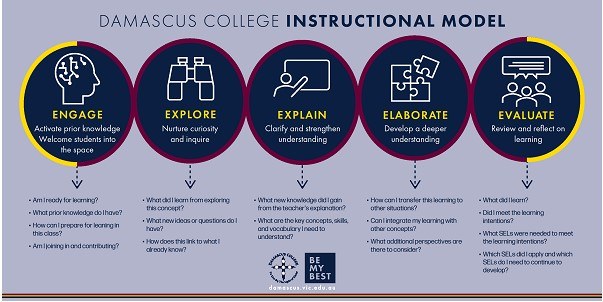 Damascus College is embarking on a five-year journey aimed at enhancing its learning culture through strategic initiatives focused on instructional excellence and student engagement. A core aspect of this plan is the transition to a 60-minute period timetable in 2025, which will allow for deeper learning and reflection in each class. This adjustment is aligned with the College’s instructional model, which is built on the 5Es framework: Engage, Explore, Explain, Elaborate, and Evaluate. These phases are designed to guide teaching and learning across the curriculum, fostering consistency and excellence in instructional delivery.