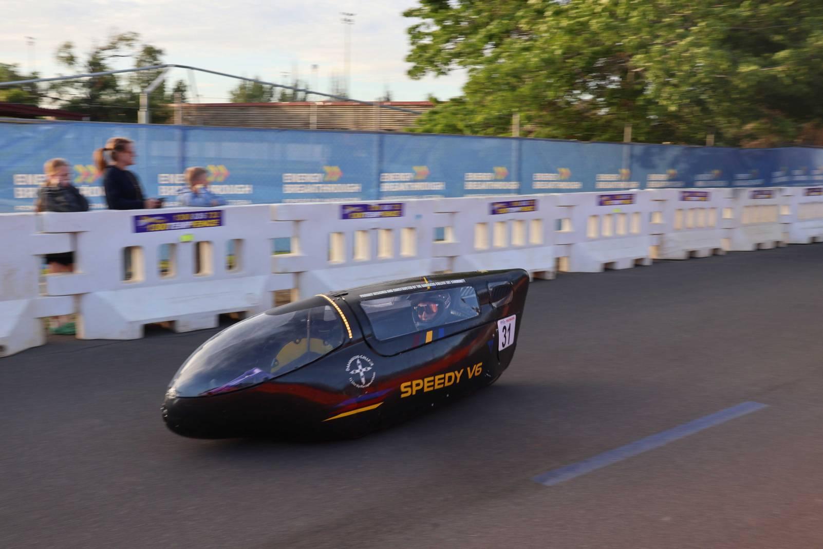 Recycled and refined from last year’s model, Speedy V6 underwent significant upgrades to improve efficiency and reduce weight. The team delivered an impressive performance, experiencing only minor mechanical issues and one rollover (with no injuries). In fact, the machine even exceeded the track’s 60 km/h speed limit a few times!