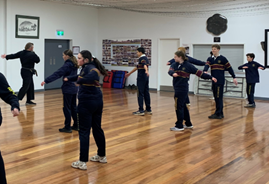 Once a week, one Action Habit group goes to the Dunnstown Football/Netball Club recreation room. That’s where we learn about self-defence. During these sessions we learn lots of new skills, like kicking, punching, yelling and lots more.