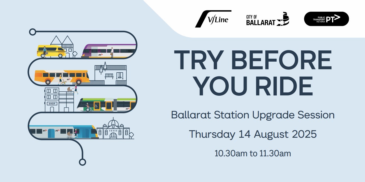Try Before You Ride - Ballarat Station Upgrade Session Inviting you to come along and try out coaches and taxis in a safe and comfortable environment, learn how to ride your local...