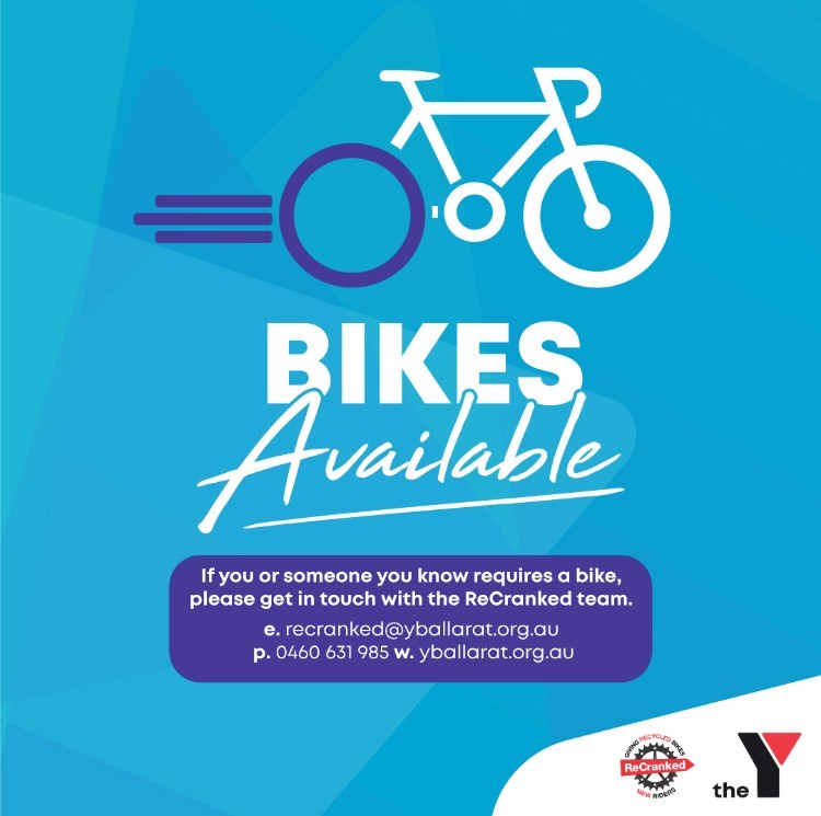 ReCranked is Y Ballarat’s bike recycling program which is supported by Brydie Collins one of our awesome Year 11 students. ReCranked is where anyone can be gifted a bike (+ helmet + bike lock) and will be fitted up for wheels that suit their age, height, and riding experience. There is NO eligibility criteria – these bikes are for everyone and anyone. The sustainable program produces little waste where all the rubber and metal are recycled. Bikes that need a little bit of fixing are fixed, and unusable bikes are taken apart and are reused for parts to make new bikes where an amazing team of volunteers spruce them up and make sure they’re ready to hit the road again, like new. They’re all refurbed bikes that have been donated that are looking for new riders so please come in!