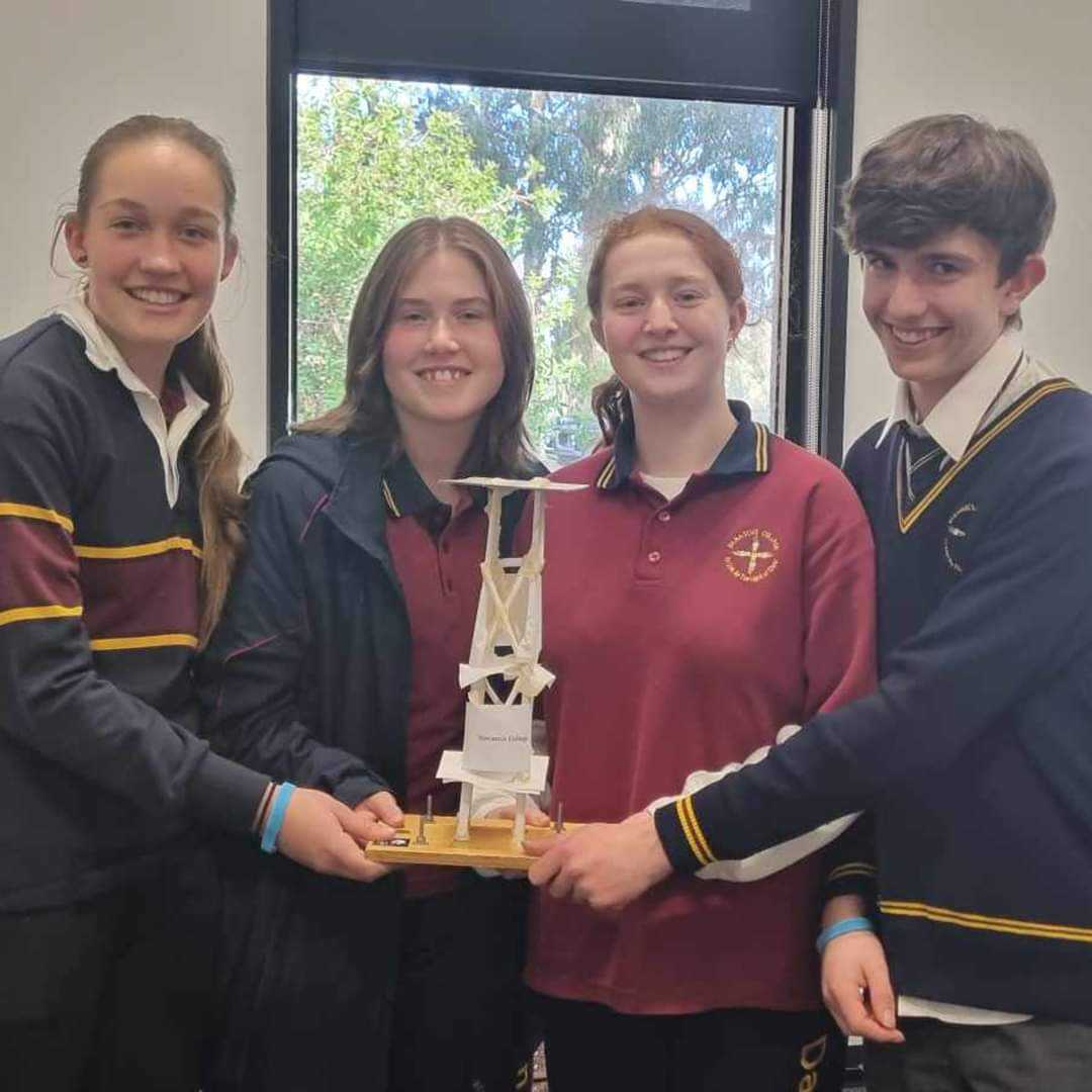 Damascus College placed third overall on the day but took out first place in the prestigious bridge-building challenge thanks to the teamwork, skill and talents of Charlie Snare, Jack Sproull, Liam O’Beirne and Kara Johnson. Congratulations to all participants.