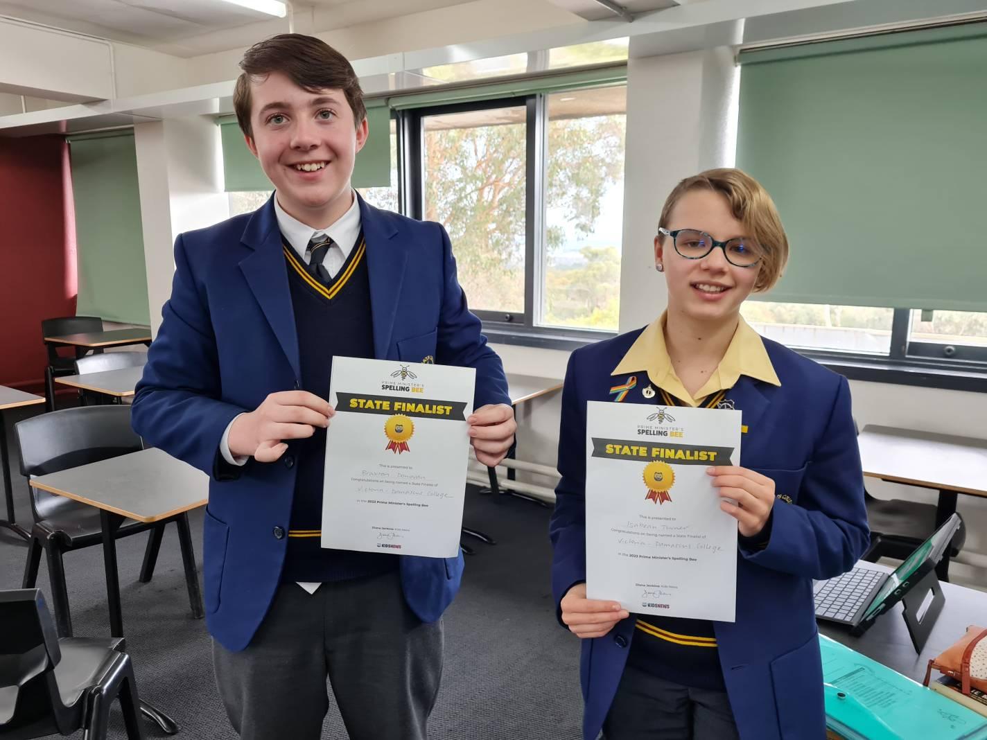 As part of the state finals round, they competed against students from around Victoria, where they were judged on a range of 30 words for spelling and time taken.