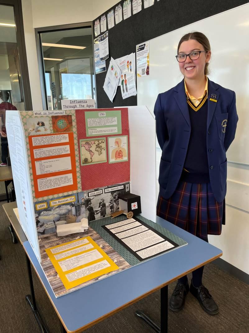 Since the last Humanities contribution to the Newsletter we have had some exciting news. Year 8 student, Ruby Lethlean’s submission to the National History Challenge has won a Gold Award in the category Museum Exhibit. Ruby’s submission was about “Influenza through the ages”. We have included another picture of Ruby and her diorama. Ruby and her family are being invited to the National History Challenge state ceremony. Congratulations Ruby.