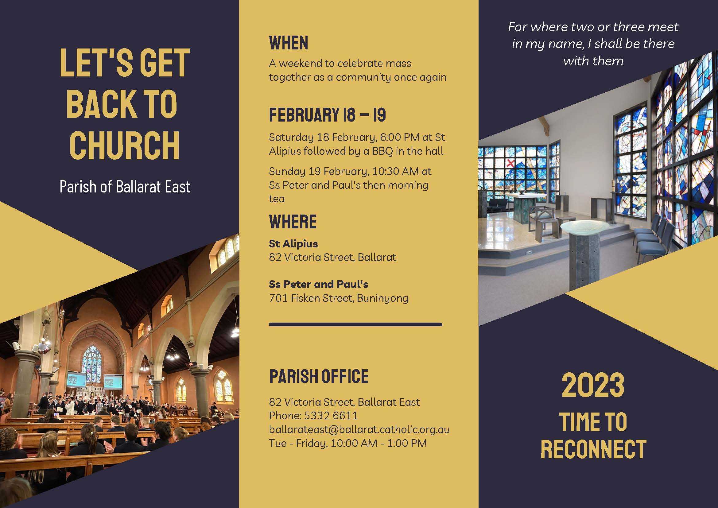 Please see following in invitation from the Parish of Ballarat East Click below for the PDF version Back to Church