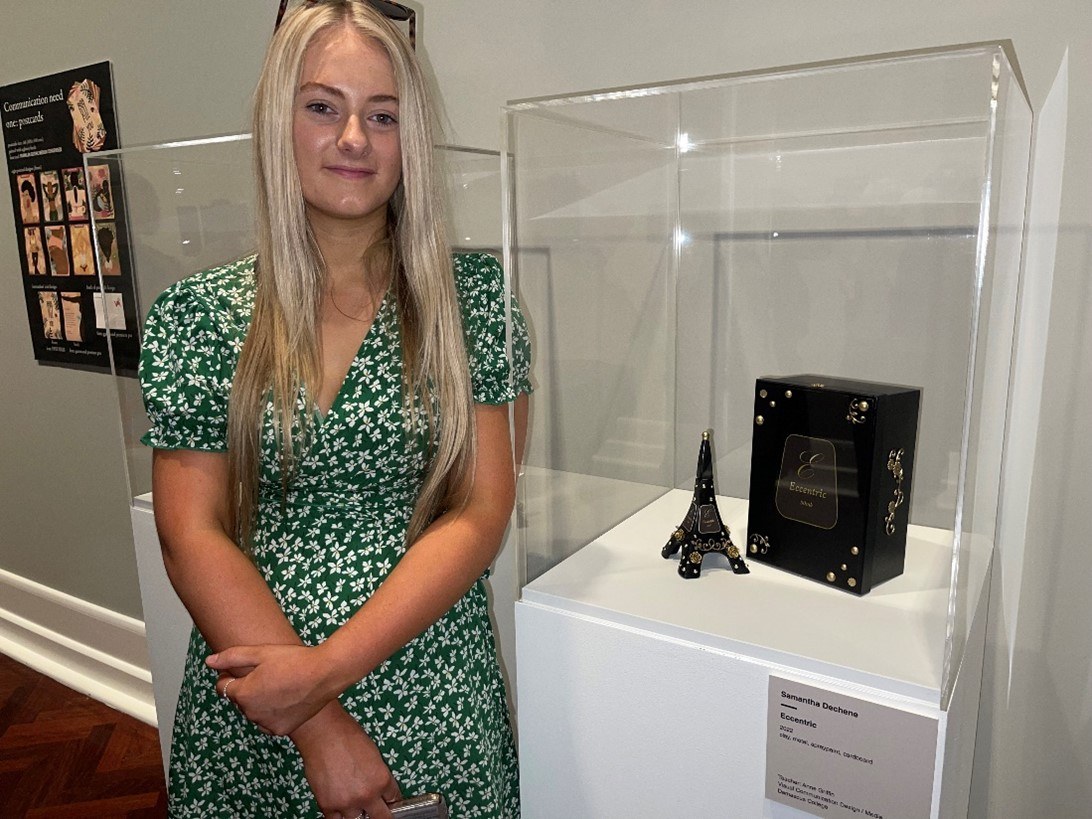 Samantha Dechene also had her Visual Communication Design artwork, titled ‘Eccentric’, selected as part of the Next Gen exhibition. Her brief was to design a bottle and packaging to sell a purfume reflecting the scent of a french rose called ‘Carmagnole’.
