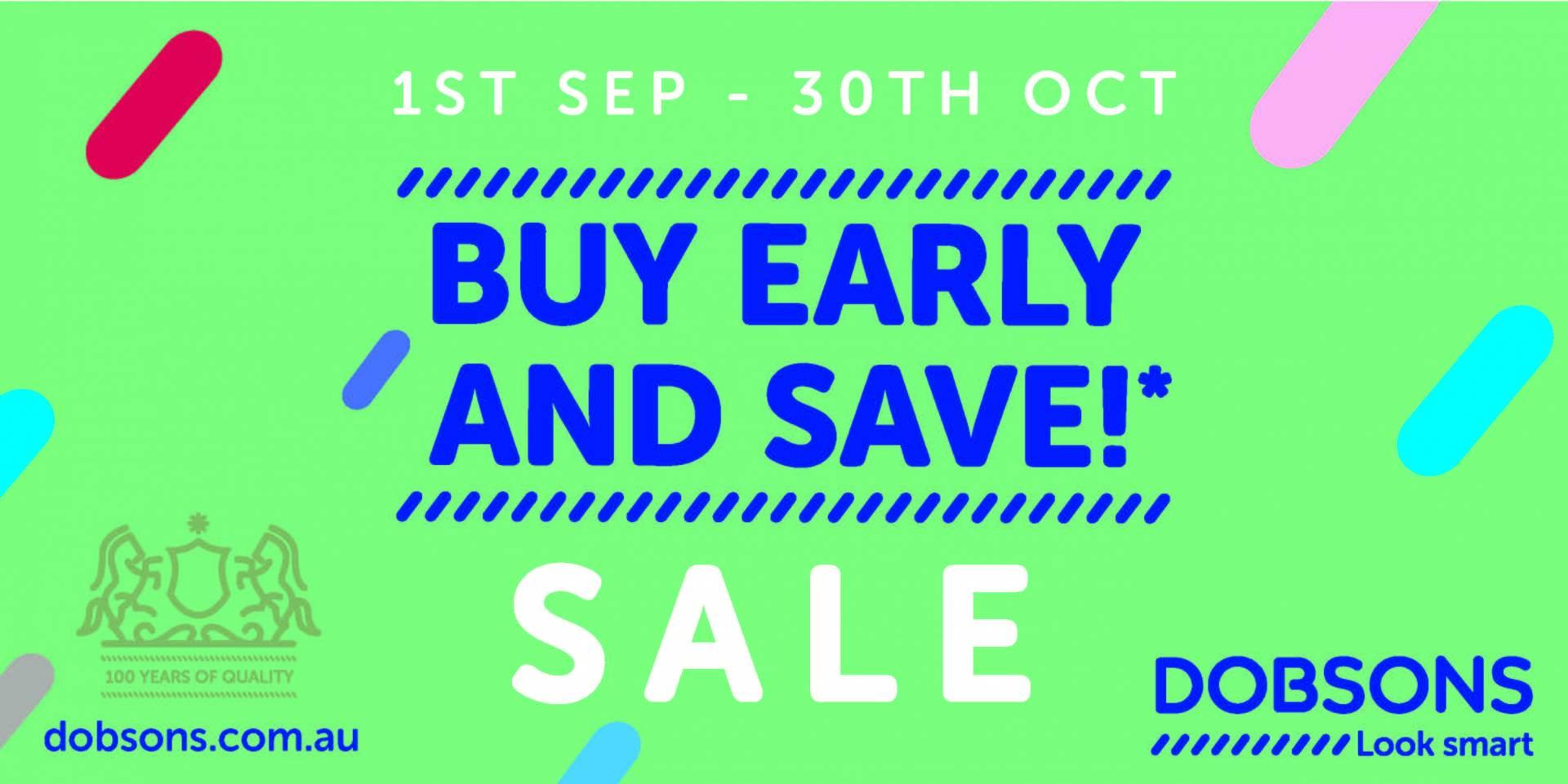 BUY EARLY SALE NOW ON! Get ready, the Dobsons annual Buy Early & Save Sale is about to begin! Save on selected uniform items when you shop with Dobsons from September 1st till Oct...