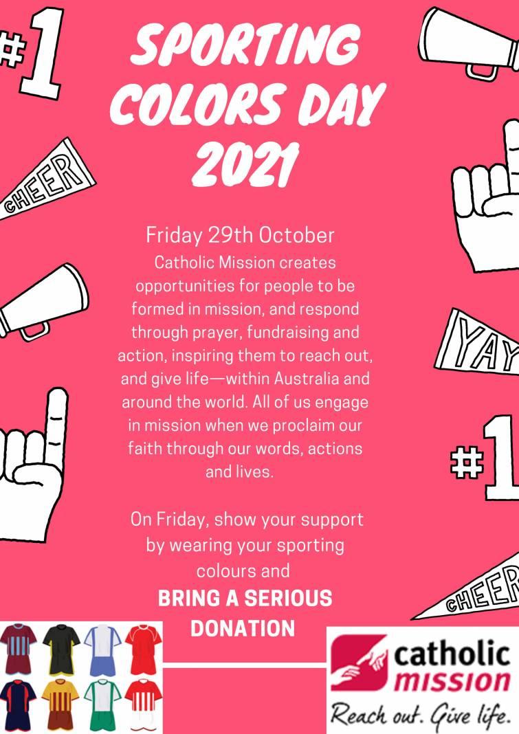 Sporting Colours Day 2021 - Friday Oct 29 Catholic Mission operates through the international structure of the Catholic Church and is part of the international Catholic network kn...