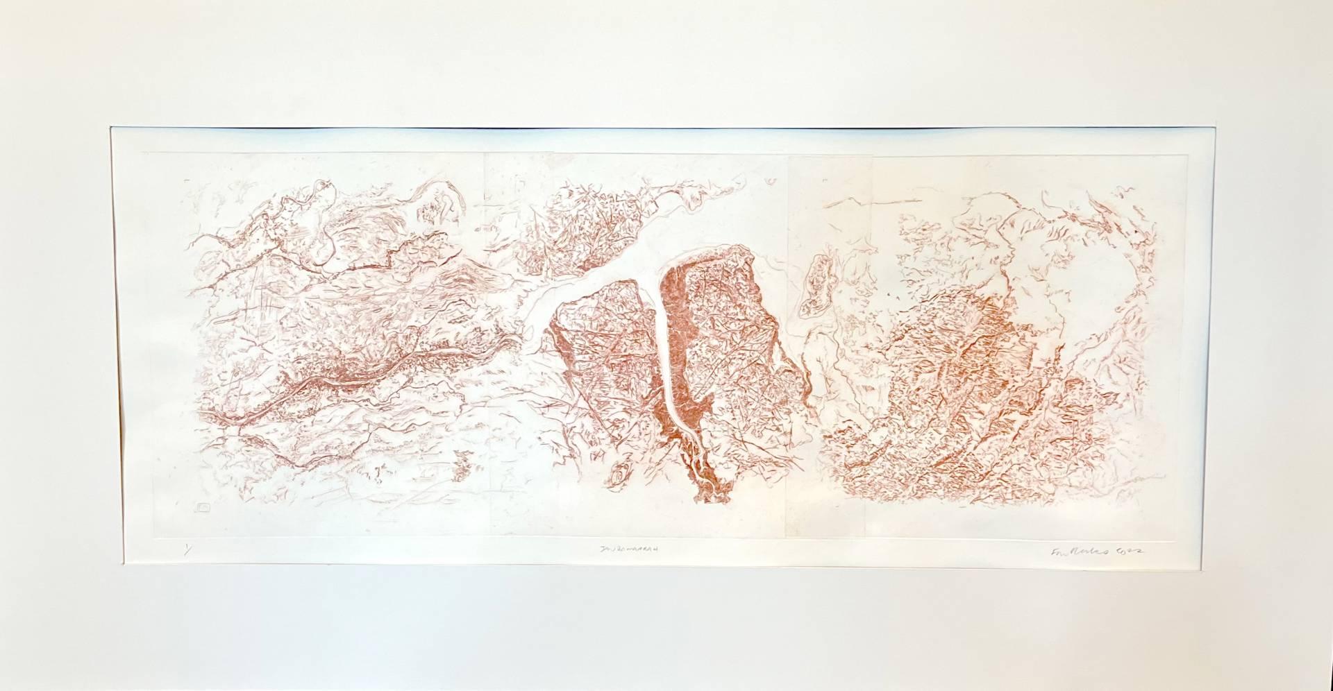 my Unit 3 folio, I have explored the concept of cultural suppression of Indigenous people over Australia. The title ‘Jandamarrah’ refers to the Bunuba warrior Jandamarrah who turned against his European captors and fought a guerrilla campaign against White Settlers in the Kimberley region. The etching is a collection of landscapes within Bunuba territory that represent the ancient landscapes and its untouched quality free from European destruction.